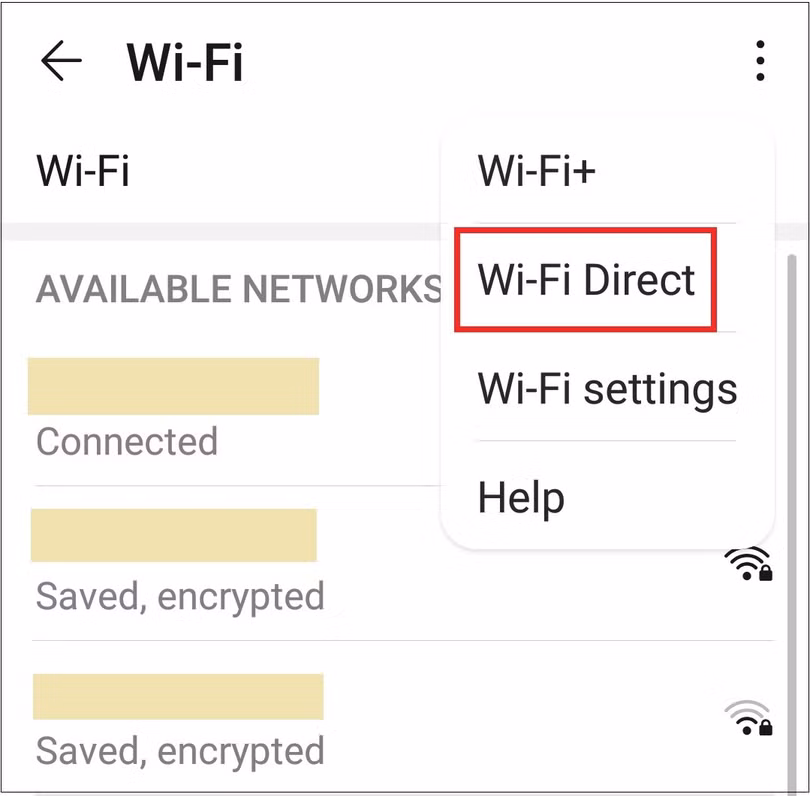 Bấm menu để chọn dòng “Wi-Fi Direct”