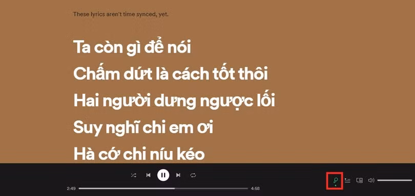 Bước 1: Mở ứng dụng Spotify trên máy tính. Nhấn phát bài hát bạn muốn xem lời. Để tắt lời bài hát nhấn lại vào biểu tượng micro.