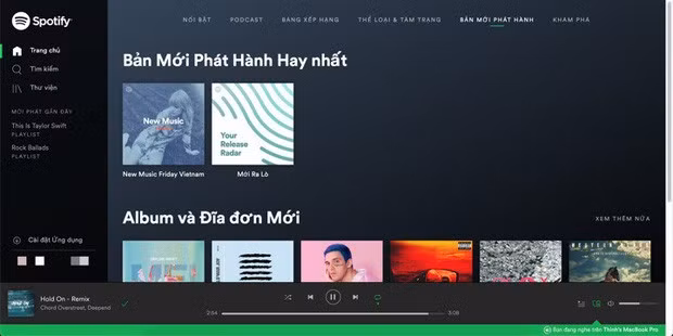 Nếu không thể cài app trên máy tính, bạn vẫn có thể nghe Spotify trên website với giao diện gồm các tính năng cơ bản cần thiết nhất.