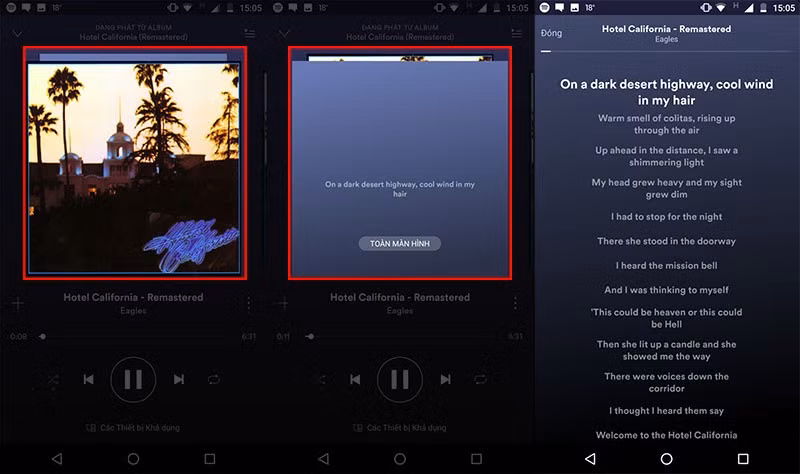 Bước 2: Bấm vào tên bài hát để mở chế độ toàn màn hình. Sau đó chọn Nhấn vào để xem lời bài hát.