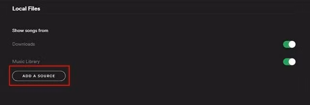 Nếu bài hát bạn muốn nghe không có trên Spotify, bạn có thể dễ dàng thêm một nguồn bên ngoài. Chuyển đến Settings trong Spotify. Trong Settings, hãy vuốt xuống cho đến khi bạn thấy tùy chọn Locate Files và click vào Add Source.