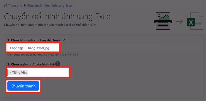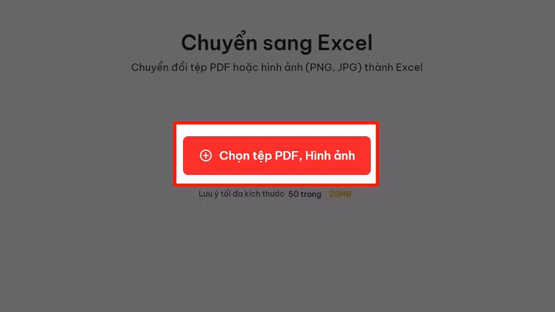 Bước 2: Hãy nhấn chọn vào mục Chuyển sang Excel để tiến hành chuyển file ảnh sang file excel nhé.