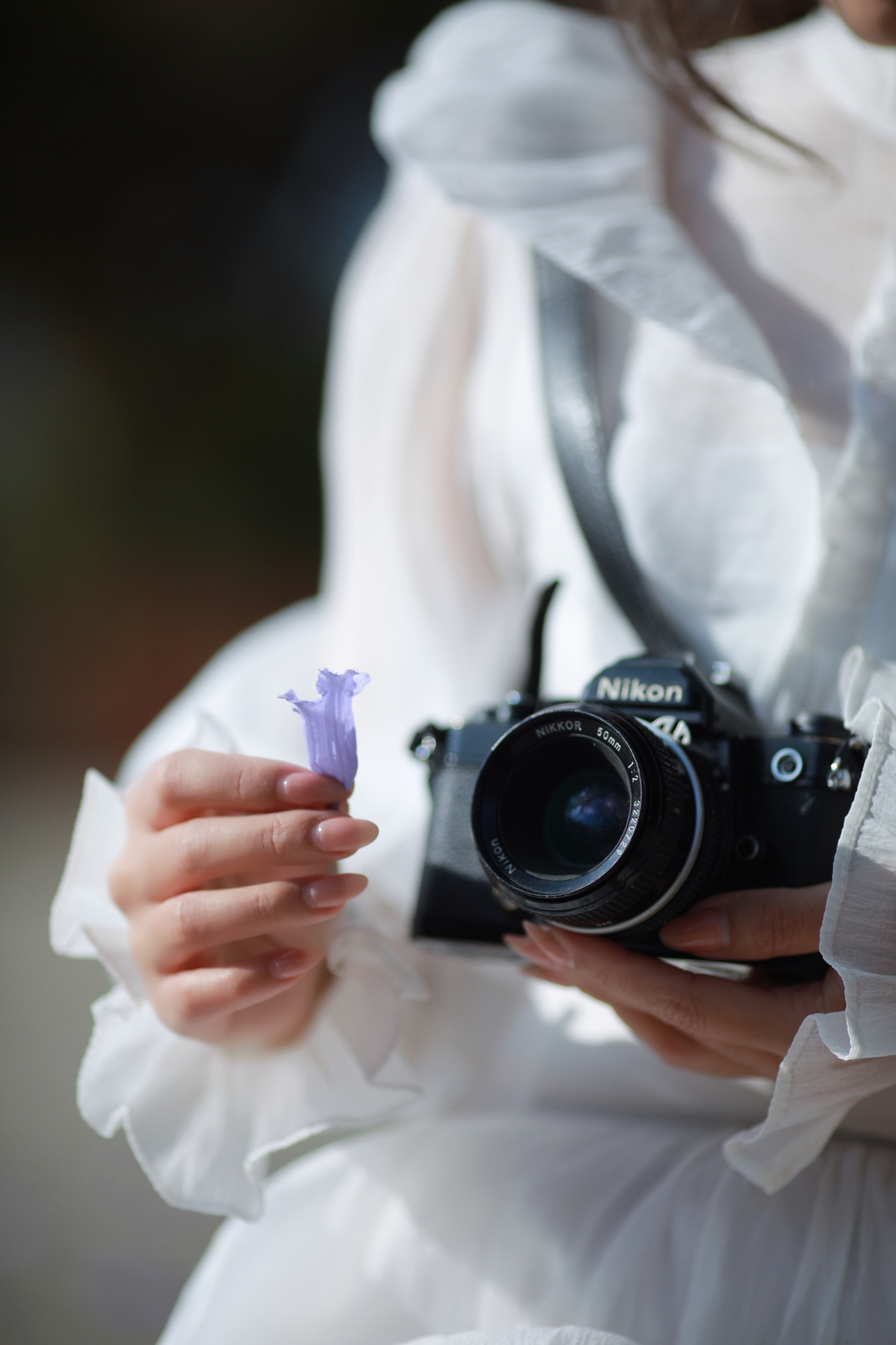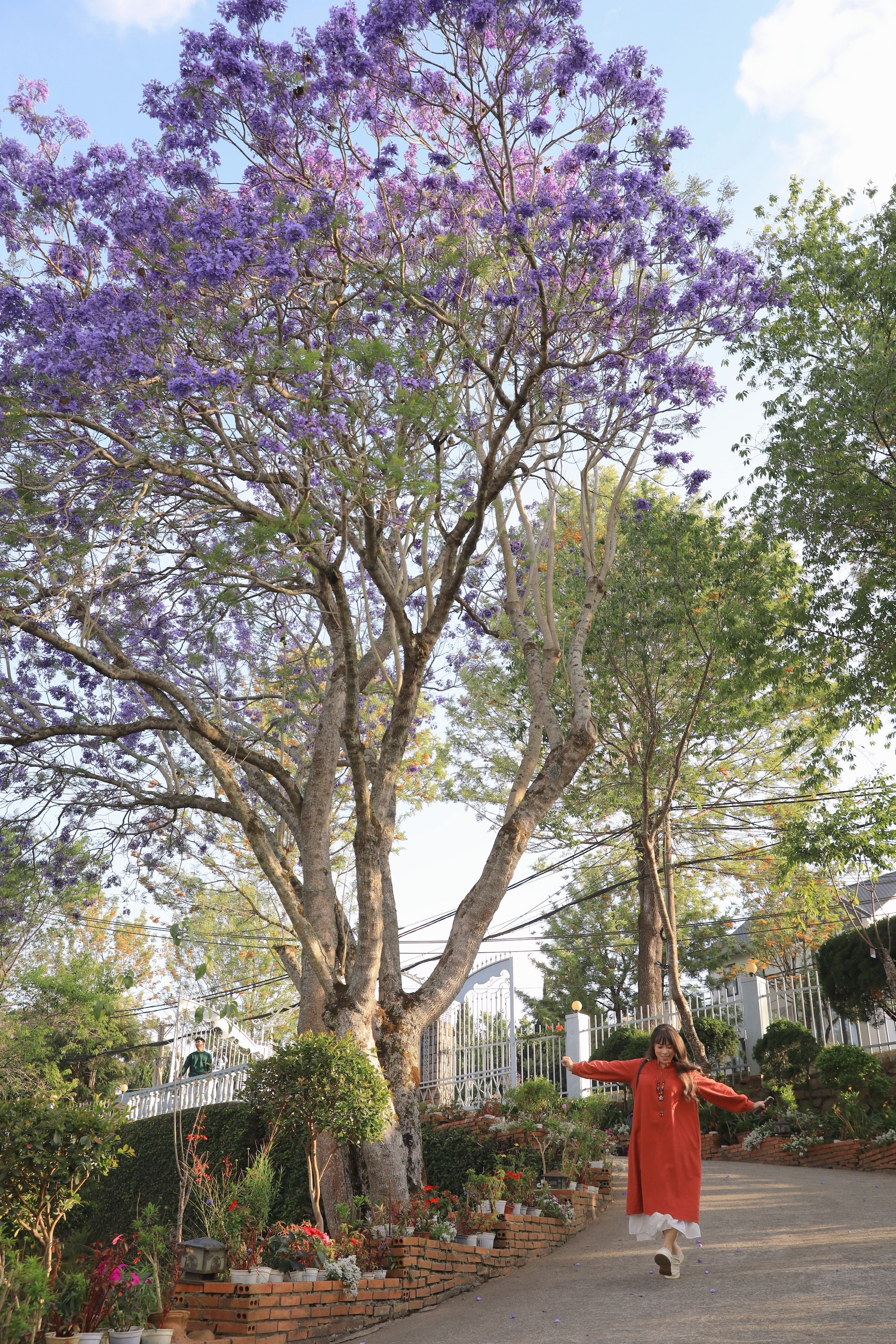 Đà Lạt (Lâm Đồng) tiếp tục được du khách quan tâm khi nhiều cây phượng tím thay nhau bung nở trên địa bàn, tạo nên khung cảnh lãng mạn hiếm có. Một trong số địa điểm chụp được quan tâm nhiều bậc nhất là cây tại số 260 đường Xô Viết Nghệ Tĩnh. Ảnh: Hồng Tâm. Phượng tím là loài cây thân gỗ lớn, tán rộng, lá phức. Cô Ngọc, chủ nhà, cho biết chính cô là người trồng cây này vào năm 1983. "Lúc tôi mới trồng, cây chỉ nhỏ bằng cổ tay. Trải qua 42 năm săn sóc, cây giờ đây đã trường thành và đạt độ đẹp vừa ý. Khuôn viên nhà tôi còn có hoa anh đào, đến mùa nở hoa cũng nhiều khách đến chụp. Tôi khá kỹ tính nhưng vẫn chào đón bạn bè gần xa đến chụp ảnh, miễn là họ giữ gìn vệ sinh chung", cô Ngọc nói. Ảnh: Hồng Tâm.