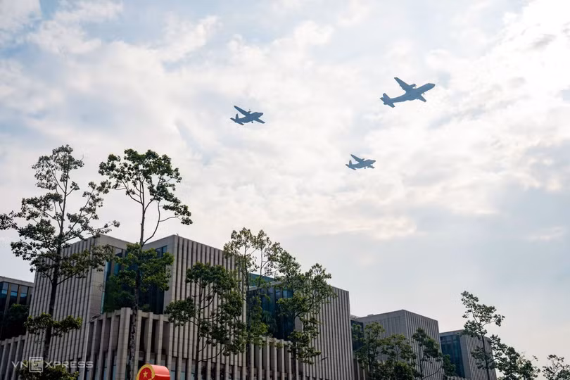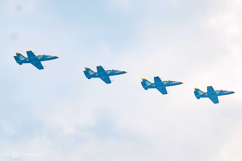 Biên đội gồm bốn máy bay huấn luyện L-39NG bay qua Quảng trường Ba Đình. Đây là lần đầu tiên các chiếc L-39NG tham gia huấn luyện chuẩn bị cho đại lễ.