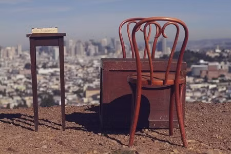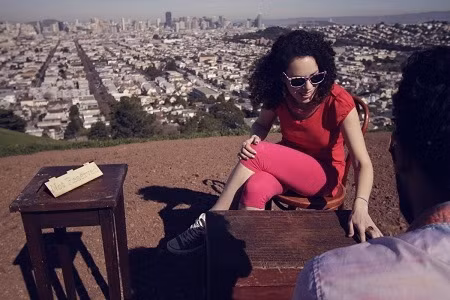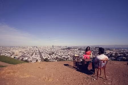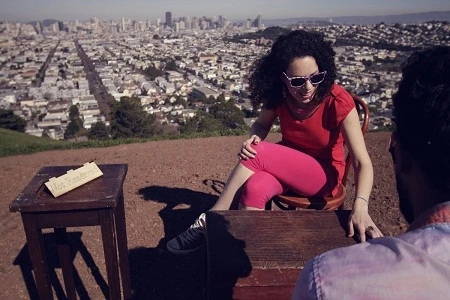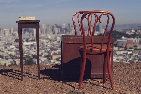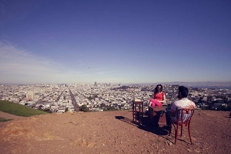 Khan đã thực hiện một chiếc hòm gỗ có khắc 36 câu hỏi của nhà tâm lý học Arthur Aron, đặt bên cạnh hai chiếc ghế. Sắp đặt này nằm trên đỉnh ngọn đồi Bernall xinh đẹp ở thành phố San Francisco, Mỹ.