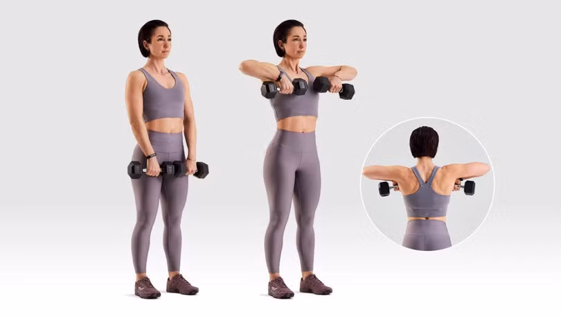Thay vì thực hiện động tác chèo thuyền thẳng đứng, hãy tập vai bằng động tác nâng vai về phía trước/bên hông, nâng tạ ra phía trước hoặc bên hông cơ thể. Giữ cánh tay hơi cong.