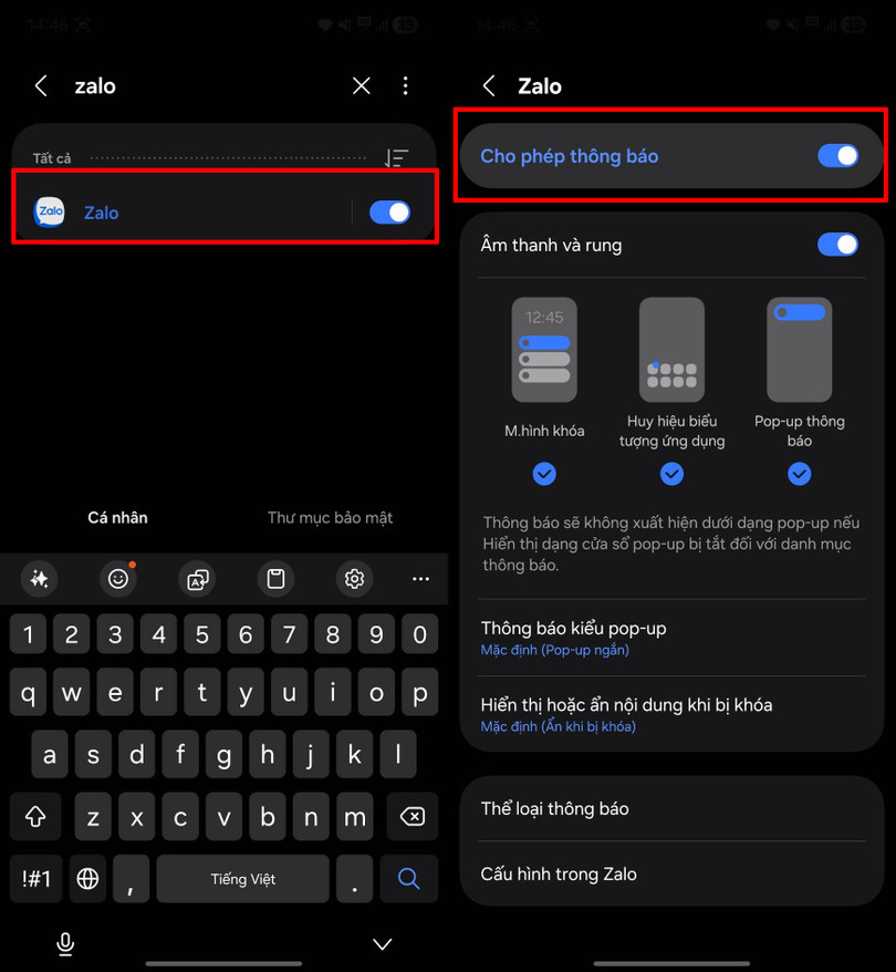 Lúc này bạn hãy tiến hành bật cho phép thông báo. Sau khi kích hoạt lại quyền thông báo, các tin nhắn và cuộc gọi từ Zalo sẽ hiển thị bình thường trên màn hình.