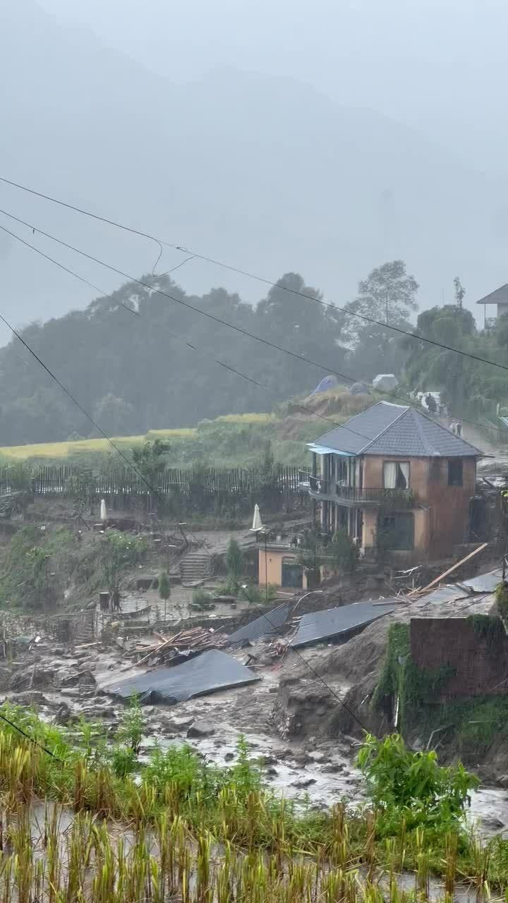Khoảng 13h ngày 8/9, thị xã Sa Pa mưa lớn. Vạt núi cao khoảng 20 m bất ngờ sạt xuống, tràn qua khu ruộng bậc thang và tràn vào khu dân cư thôn Thào Hồng Dến 2, xã Mường Hoa.