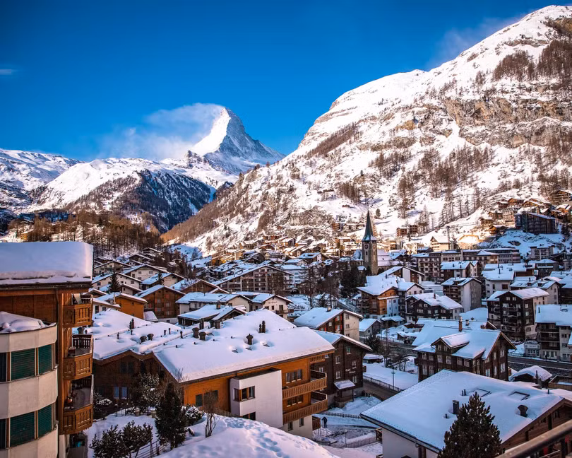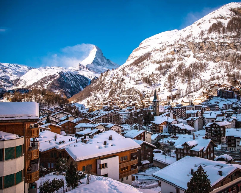 Zermatt, Thụy Sĩ: Zermatt là một ngôi làng nhỏ xinh đẹp trên dãy núi Alps của Thụy Sĩ, nằm ở độ cao 1620 m. Xe hơi bị cấm ở ngôi làng miền núi này để ngăn ngừa ô nhiễm không khí. Du khách có thể đến làng Zermatt bằng chuyến tàu tốc hành Glacier Express nổi tiếng thế giới. Trên hành trình đến Zermatt trên chuyến tàu lửa này, du khách còn có thể chiêm ngưỡng những cảnh quan thiên nhiên đầy ngoạn mục của Thụy Sĩ. Ảnh: The Next Trip.