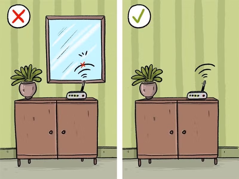 Gương có thể giúp bạn tự ngắm nhìn bản thân nhưng nó cũng đóng vai trò như một tấm chắn, khiến đường truyền internet bị dội lại. Khi nó ở gần bộ định tuyến, nó có thể làm cho cường độ tín hiệu chậm hơn và không ổn định.