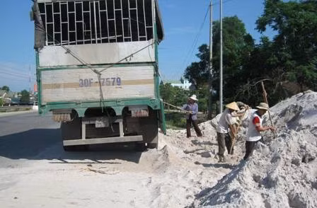 . Những núi cát này ngang nhiên nằm ở các mép cầu Cày khiến phương tiện qua lại ở những điểm giao thông này rất khó khăn. Cả ngày lẫn đêm, hàng chục lượt xe trọng tải lớn nằm ngang nhiên giữa lòng đường quốc lộ 1A để tập kết và bốc cát.