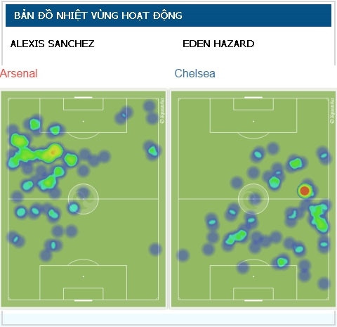 Những thống kê chuyên môn cũng mang đến cho chúng ta đánh giá chính xác hơn về trận đấu này. Theo bản đồ nhiệt được tờ Daily Mail cung cấp, hầu hết các tiền vệ Arsenal đều di chuyển như thể như muốn cày từng cm mặt cỏ sân Emirates. Trong khi đó, tầm hoạt động của các tiền vệ Chelsea được “quy hoạch” rất chỉnh chu và khoa học.