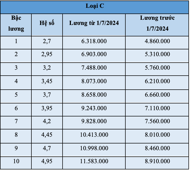 Công nhân quốc phòng bậc 1 loại C hưởng lương thấp nhất, với mức 6,3 triệu đồng.