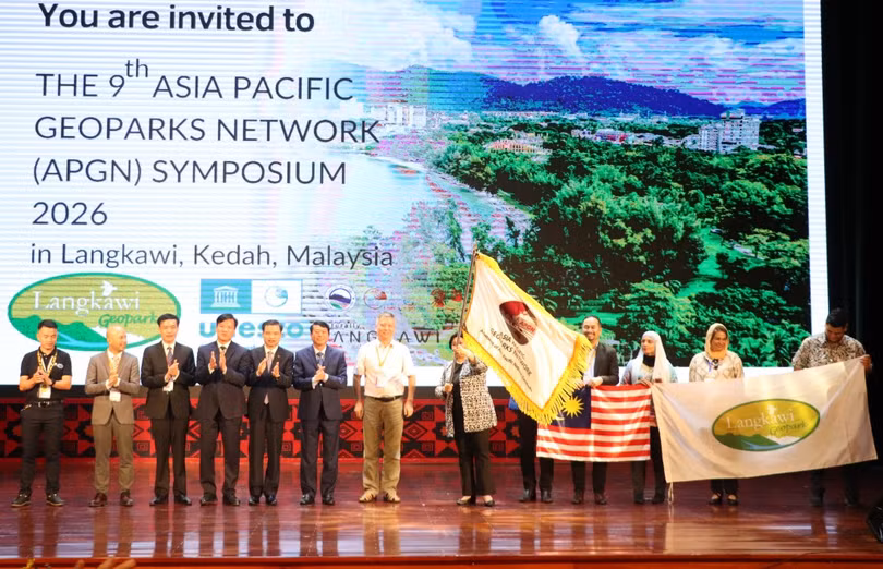 Tại phiên bế mạc, đại diện lãnh đạo tỉnh Cao Bằng thực hiện nghi thức trao cờ đăng cai tổ chức Hội nghị APGN lần thứ 9 cho CVĐC toàn cầu Langkawi (Malaysia).