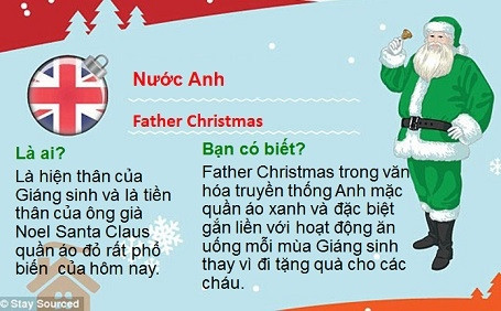 Nhưng thực tế, ông già Noel ở các quốc gia khác nhau cũng có những phiên bản khác nhau, từ ông già Noel diện bộ đồ xanh của người Anh, cho tới bà cụ phù thủy tốt bụng La Befana của người Ý… Ông già Noel thực tế có rất nhiều “cộng sự” giúp đem lại một mùa Giáng sinh vui vẻ ở khắp nơi trên thế giới.