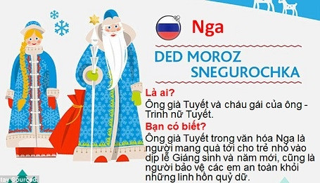 Ở Nga, trẻ em lại quen thuộc với Ông già Tuyết và cô cháu gái của ông - Trinh nữ Tuyết.