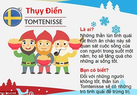 Ở Thụy Điển, những thần lùn Tomtenisse sẽ tặng quà cho những người sống tốt trong năm và trừng trị những người sống tệ.