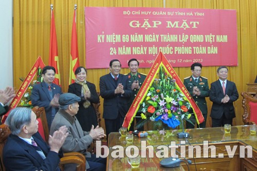 (Baohatinh.vn) - Chiều 20/12, đoàn lãnh đạo tỉnh Hà Tĩnh do Bí thư Tỉnh ủy Nguyễn Thanh Bình làm trưởng đoàn đến thăm, chúc mừng cán bộ, chiến sỹ Bộ CHQS tỉnh nhân kỷ niệm 69 năm thành lập Quân đội nhân dân Việt Nam (22/12/1944 - 22/12/2013) và 24 năm ngày hội Quốc phòng toàn dân (22/12/1989 - 22/12/2013).