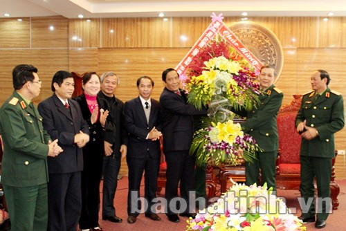 (Baohatinh.vn) - Chiều 19/12, đoàn lãnh đạo tỉnh Hà Tĩnh do Ủy viên BCH T.Ư Đảng, Bí thư Tỉnh ủy, Chủ tịch HĐND tỉnh Nguyễn Thanh Bình làm trưởng đoàn đến thăm, chúc mừng Bộ Tư lệnh Quân khu IV nhân kỷ niệm 69 năm thành lập Quân đội nhân dân Việt Nam (22/12/1944 - 22/12/2013) và 24 năm ngày hội Quốc phòng toàn dân (22/12/1989 - 22/12/2013).