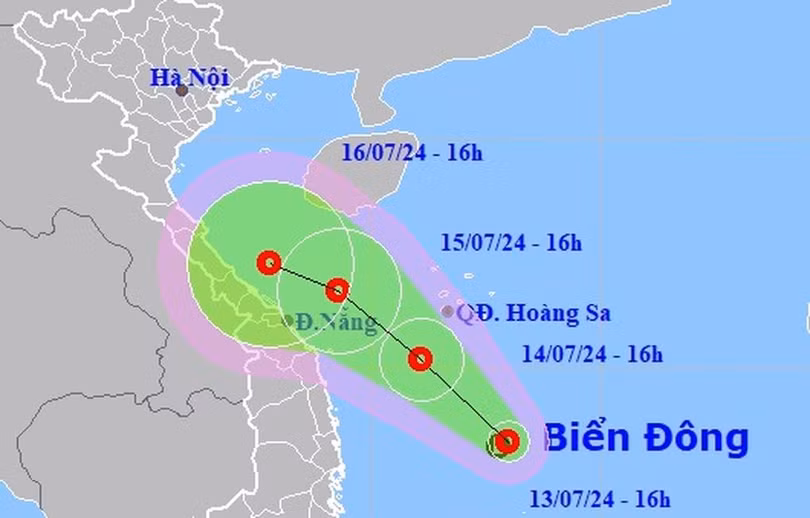 Đêm nay và ngày mai, hình thái trên giữ hướng đi và vận tốc, mạnh lên cấp 6-7, giật cấp 9. Chiều 14/7, tâm áp thấp nhiệt đới nằm trên vùng biển phía tây nam quần đảo Hoàng Sa.