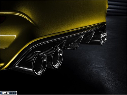 Mang phong cách dòng xe M Sport, M4 Coupe cũng có nhiều chi tiết được chế tạo từ sợi carbon như cản trước, hệ thống khuếch tán gió phía sau, sọc sơn xanh-tím-đỏ trên nóc xe, cùng nhiều yếu tố thiết kế mang dấu ấn riêng của dòng xe M Sport. Ngay cả bốn ống xả được bố trí thành từng cặp trên M4 Coupe cũng được chế tạo từ vật liệu nhẹ và có những điểm mang dấu ấn truyền thống.