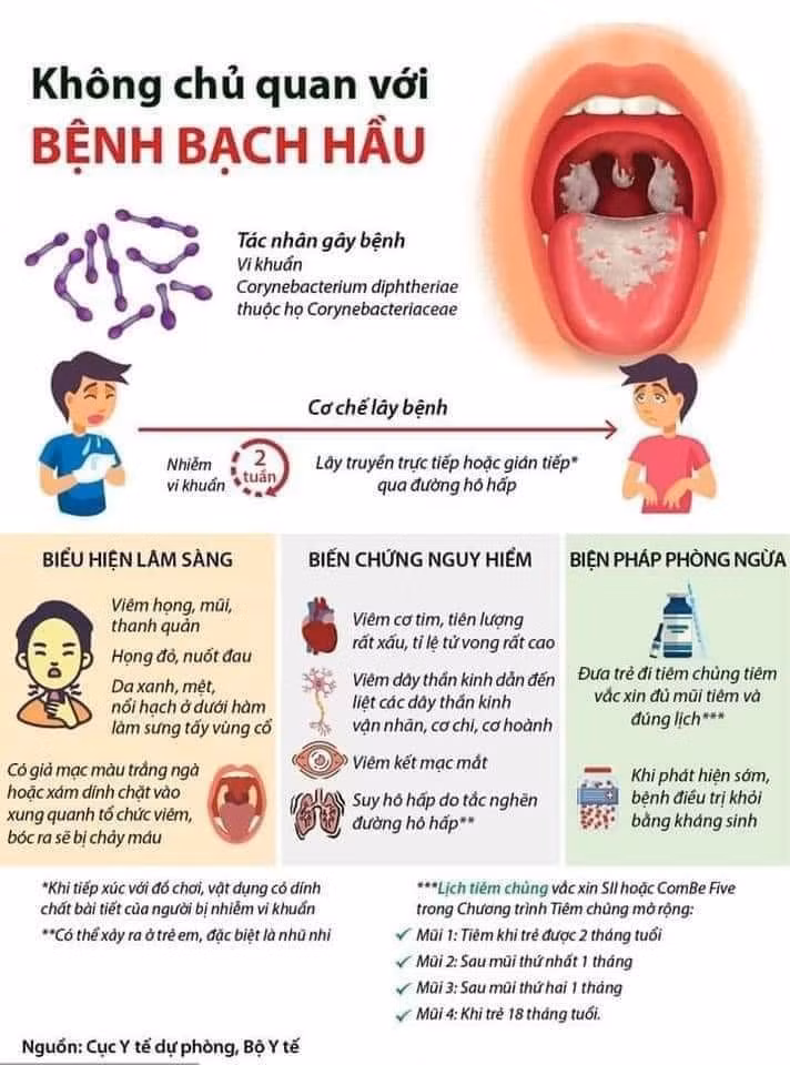 Vì vậy, khi xuất hiện các biểu hiện nghi ngờ mắc bệnh bạch hầu, tốt nhất người dân nên đến cơ sở y tế để được theo dõi và điều trị kịp thời.