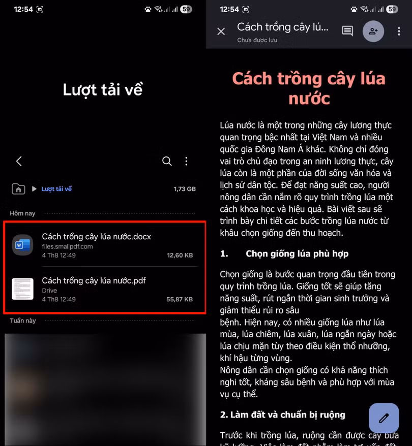 Sau khi tải xong, file Word sẽ được lưu trong thư mục Tệp hoặc Tải xuống trên điện thoại. Giờ đây bạn có thể mở file, chỉnh sửa nội dung, thay đổi định dạng hoặc sao chép nội dung tùy ý một cách dễ dàng và nhanh chóng.