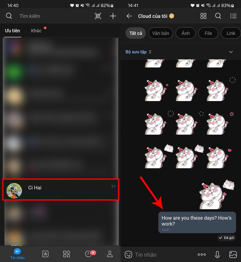 Bước 2: Mở ứng dụng lên và chọn tiếp cho mình vào cuộc trò chuyện có đoạn tin nhắn mà bạn cần dịch > Ấn giữ vào tin nhắn cần dịch để tiến hành nhờ Zalo dịch hộ giúp bạn mà không cần thoát ra sử dụng ứng dụng khác.