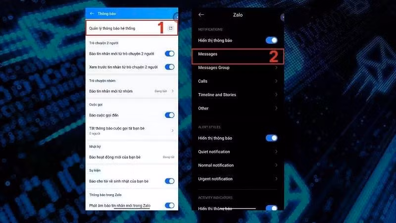 Bước 2: Sau đó, bạn bấm vào mục Quản lý thông báo hệ thống. Lúc này, bạn sẽ được trở về phần cài đặt ứng dụng Zalo trong điện thoại. Tại đó, bạn hãy nhấn vào mục Messages.
