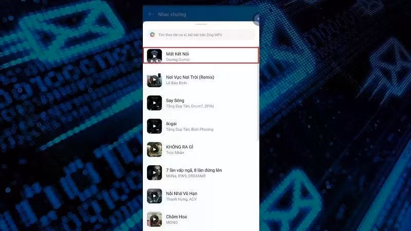 Bước 3: Lúc này, hãy tìm tên bài hát mà bạn thích rồi ấn vào tựa đề để chọn làm nhạc chuông cuộc gọi Zalo.