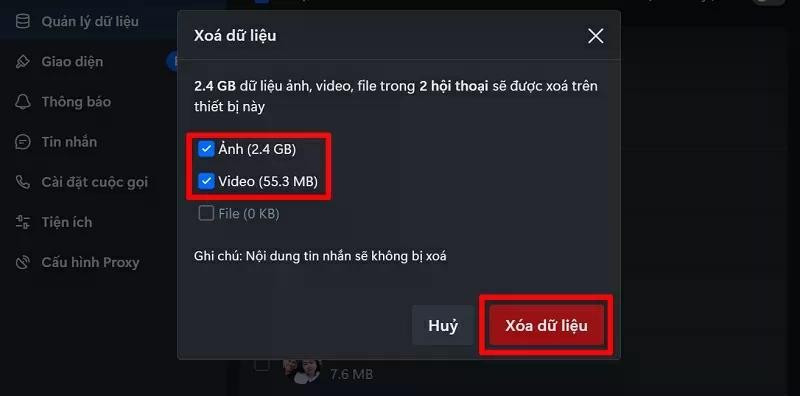 Bước 4: Cuối cùng, bạn nhấn Xác nhận xóa dữ liệu. Khi xóa dữ liệu này, nội dung tin nhắn sẽ không bị xóa nên bạn hoàn toàn yên tâm.