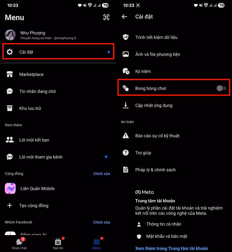 Bạn hãy mở ứng dụng Messenger > Nhấn vào mục Cài đặt và kiểm tra xem bong bóng chat đã được bật hay chưa. Nếu bạn vô tình tắt tính năng này, hãy bật lại để có thể nhận thông báo và sử dụng bong bóng chat như bình thường nhé.