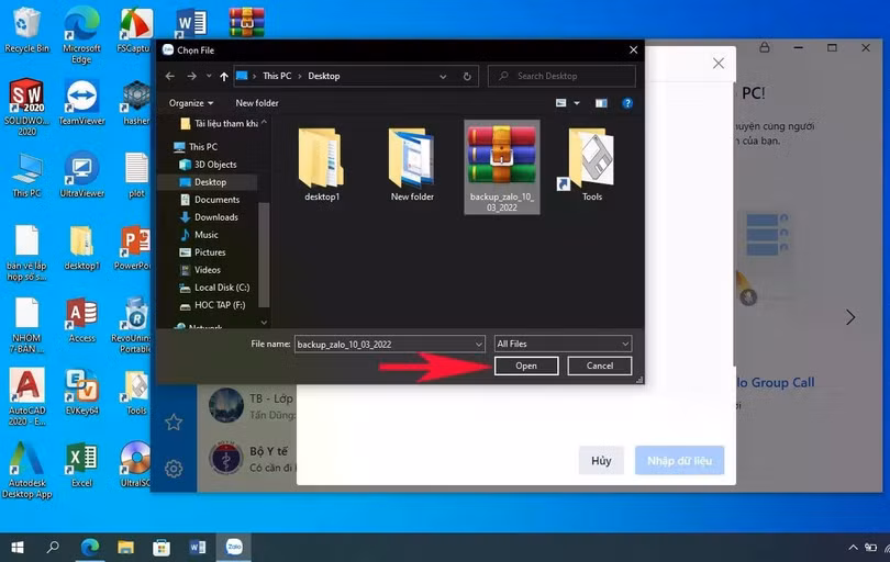 Bước 3: Điều hướng đến thư mục có file sao lưu của bạn, chọn file và nhấn 'Open' để bắt đầu khôi phục.