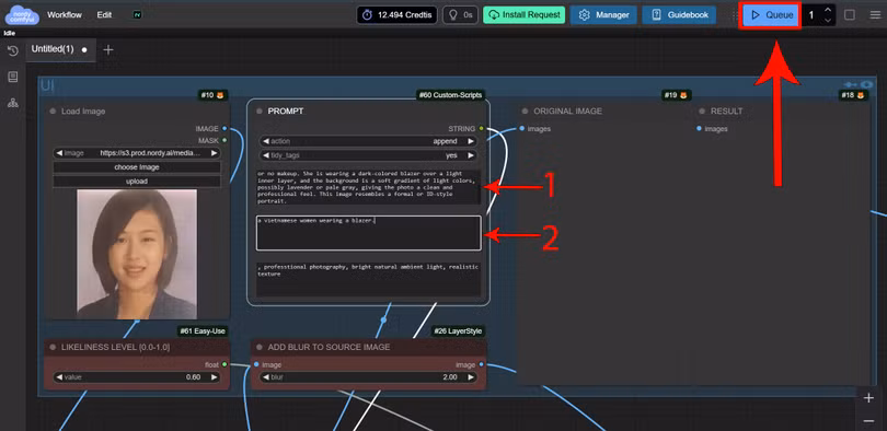 Sau khi hoàn tất, nhấn vào nút Queue để gửi yêu cầu xử lý cho hệ thống.