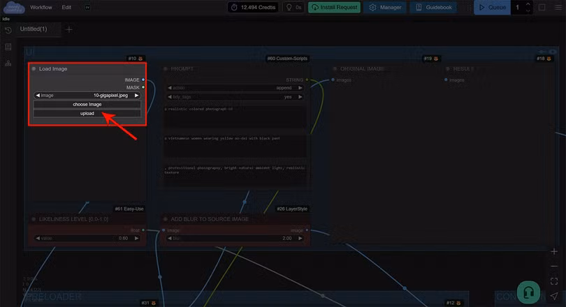 Bước 5: Nhấn vào nút Upload rồi chọn bức ảnh cũ mà bạn muốn phục hồi từ máy tính.