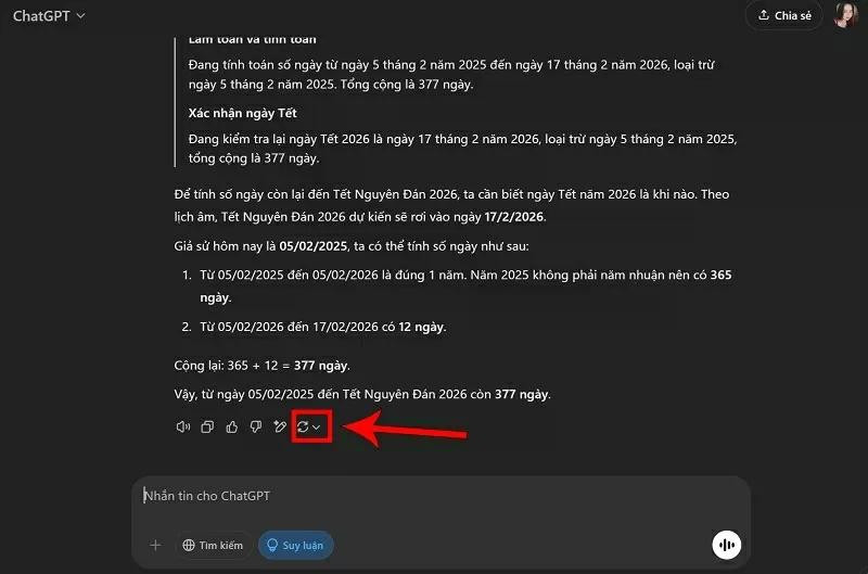 Bước 3: Đợi một chút để ChatGPT trả lời xong, bạn nhấn chọn vào mục Mũi tên như hình để chuyển sang GPT o3-mini nha.
