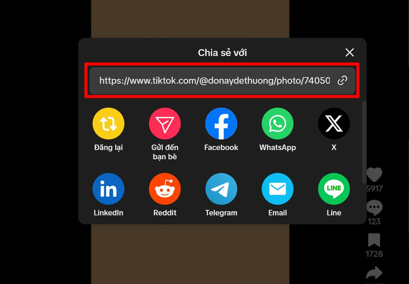 Bước 1:Mở TikTok trên máy tính của bạn lên, bạn có thể sự dụng nền tảng web hoặc ứng dụng TikTok đều được nha > Nhấn chọn vào ảnh mà bạn muốn tải về > Chọn vào biểu tượng Chia sẻ.
