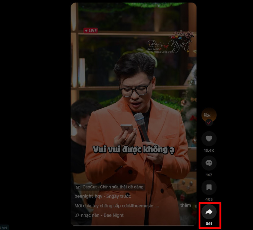 Bước 1: Mở TikTok trên máy tính của bạn lên, bạn có thể sự dụng nền tảng web hay ứng dụng TikTok đều được nha > Nhấn chọn vào video mà bạn muốn tải về > Chọn vào biểu tượng Chia sẻ.