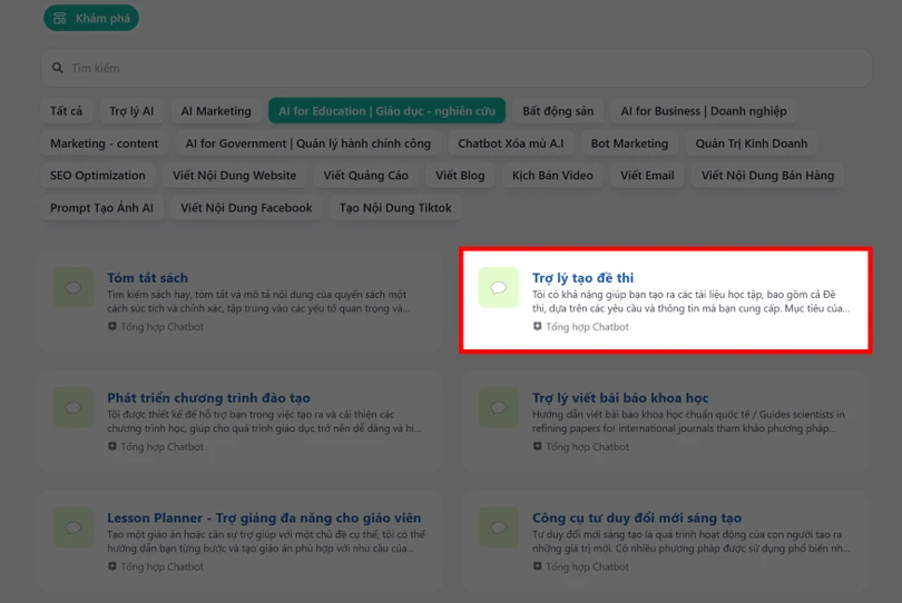 Công cụ AI chính là ChatBotX. Đây là công cụ AI hỗ trợ tạo đề thi nhanh chóng, chính xác và đa dạng theo từng cấp độ. Với khả năng tự động sinh câu hỏi, điều chỉnh độ khó và đa dạng hóa nội dung, ChatBotX giúp bạn tiết kiệm thời gian soạn thảo rất nhiều đấy.