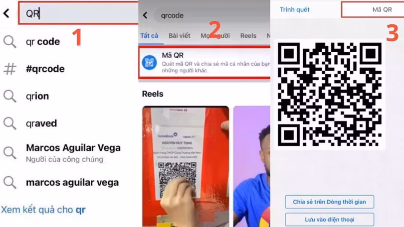 Bước 3: Bạn có thể chọn “Trình quét” để tìm bạn bè hoặc “Mã QR” để hiển thị mã cá nhân. Cuối cùng, nhấn Lưu vào điện thoại hoặc Chia sẻ lên Dòng thời gian để kết nối ngay lập tức!