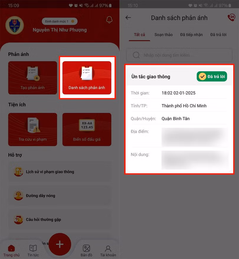 Cách xem danh sách phản ánh vi phạm giao thông đã gửi