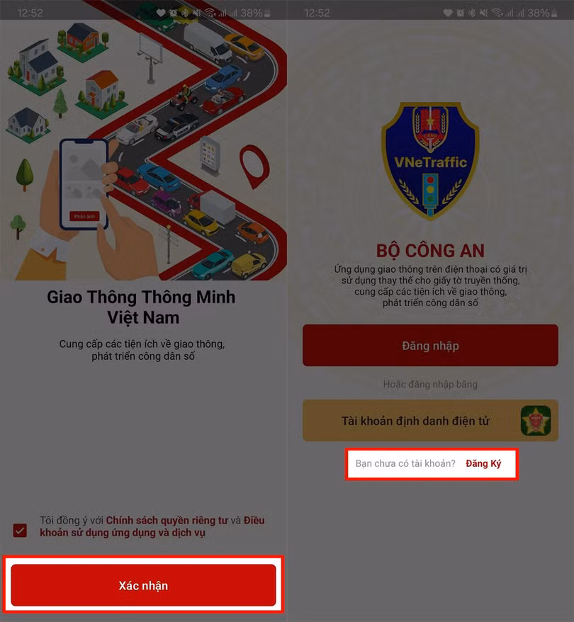 Bước 2: Tiến hành đăng nhập hoặc đăng ký tài khoản của bạn, hiện nay ứng dụng vẫn chưa thể đăng nhập qua nền tảng VNeID nên bạn hãy nhấn đăng ký bằng số Căn Cước để thuận tiện hơn.