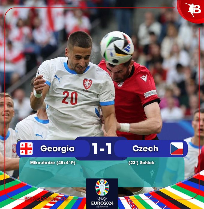Bàn thắng Georgia: Mikautadze (45'+4, pen) Séc: Schick (59')