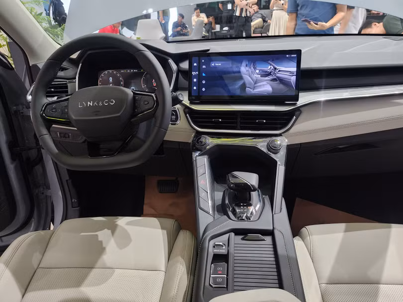 Nội thất của Lynk & Co khá ấn tượng khi sở hữu tone màu be kết hợp đen hiện đại, ghế lái chỉnh điện bọc da dáng thể thao.