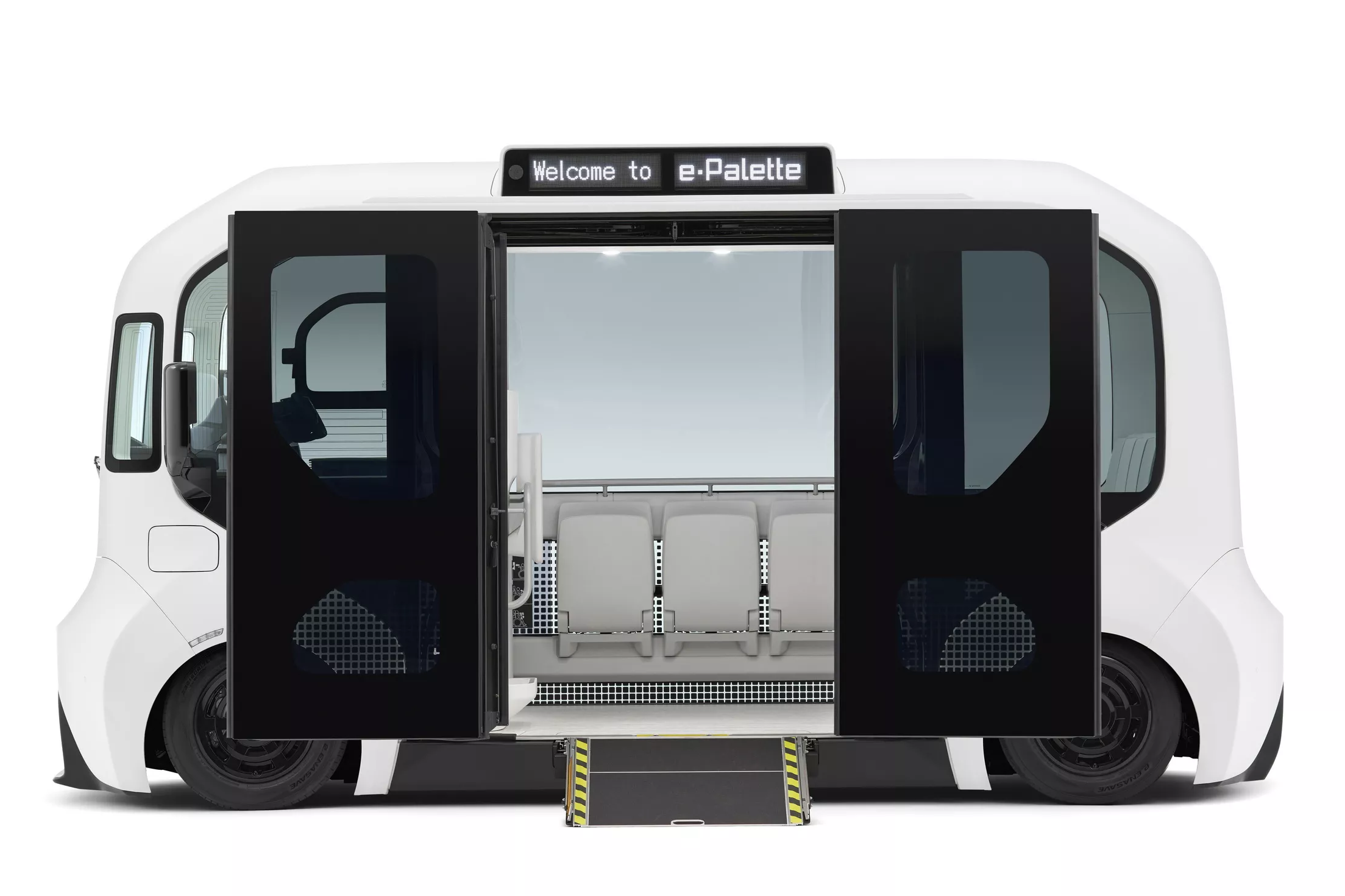 Sau nhiều năm thử nghiệm, Toyota đã chính thức ra mắt mẫu xe điện e-Palette, vốn được phát triển từ mẫu xe ý tưởng e-Palette Concept ra mắt tại CES 2018. Sau đó, mẫu concept được nâng cấp và đảm nhiệm vai trò chuyên chở vận động viên tại Tokyo Olympic và Paralympic 2020, vốn được tổ chức vào năm 2021. Ngoại hình mẫu xe điện này chỉ được tinh chỉnh nhẹ so với thiết kế trước đây. Kính chắn gió trước cũng được bổ sung cửa sổ phụ nhằm tăng tầm quan sát khi có người cầm lái.