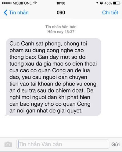Theo thông báo của Cục Cảnh sát phòng, chống tội phạm công nghệ cao (C50 – Bộ Công an) được Mobifone gửi tới khách hàng, thủ đoạn của các đối tượng xấu là giả mạo số điện thoại của công an để yêu cầu người dân chuyển tiền vào tài khoản để phục vụ công điều tra sau đó chiếm đoạt.