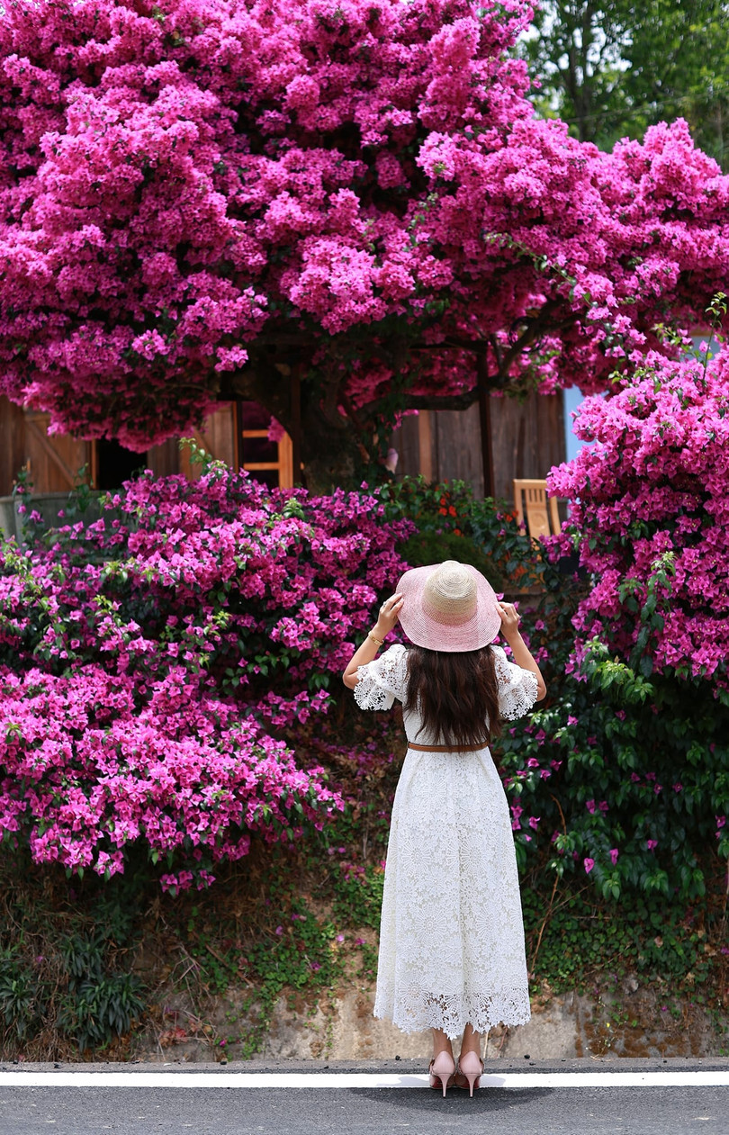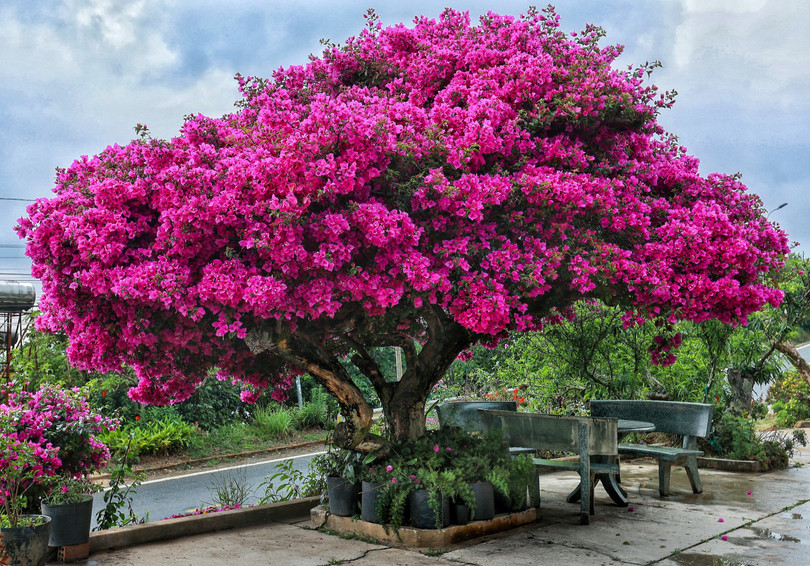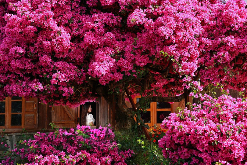 Mỗi năm, độ cuối tháng 4, đầu tháng 5, cây hoa giấy nằm trên đèo D'ran (xã Trạm Hành, Đà Lạt, tỉnh Lâm Đồng) lại thu hút sự chú ý của người dân, du khách từ nhiều nơi. Loài cây thuộc bộ hoa cẩm chướng nằm trong khuôn viên nhà của chị Bùi Hiền. "Ba tôi trồng chúng vào năm 1990. Thoạt đầu, ba trồng cho vui, cho đẹp sân vườn. Sau đó, mãi đến năm 2018, cây hoa giấy bắt đầu nổi tiếng nhờ hình ảnh từ các nhiếp ảnh gia địa phương. Vào thời điểm hút khách nhất, có đến cả trăm người dân, du khách đến thả dáng, đông nhất là vào cuối tuần", chị chia sẻ với Tạp chí Tri thức - Znews. Một trong số nhiếp ảnh gia địa phương đó là anh Sam Sam. Trải qua 3 mùa hoa giấy tại đây, Sam nói với Znews rằng năm nào cũng chụp ảnh cây, nhưng không năm nào là cây thôi đẹp.