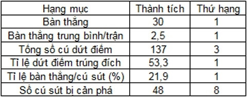 Ở châu Âu, đội bóng của Mourinho cũng chơi rất ấn tượng trước khung thành đối phương. Sau 5 trận, họ đã ghi 14 bàn, chỉ kém Porto (15) và bằng với Shakhtar Donetsk. Tính các hạng mục khác, bao gồm số cú sút và tỉ lệ bàn thắng/cú sút, Chelsea đều ở trong tốp 5.