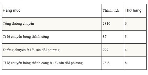 Tương ứng với sự hiệu quả trong dứt điểm, Chelsea đã rất ấn tượng trong các chỉ số chuyền bóng. Các CĐV, và nhất là ông chủ Roman Abramovich, hẳn sẽ hài lòng khi biết Chelsea chỉ xếp hạng 18 về tỉ lệ các đường chuyền dài. Hóa ra, họ là một đội chơi kỹ thuật và tốc độ.Thành tích chuyền bóng của Chelsea ở Premier League