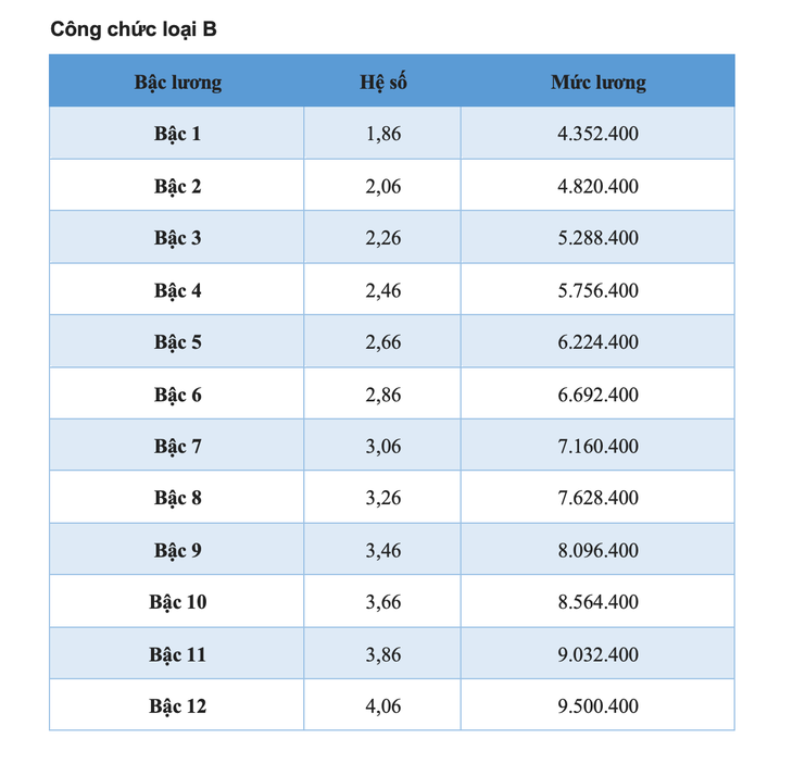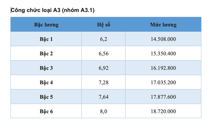 Dưới đây là chi tiết toàn bộ bảng lương công chức được áp dụng từ năm 2025. Bảng lương được tính theo mức lương cơ sở 2,34 triệu đồng/tháng.
